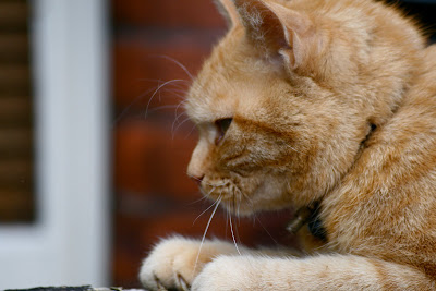 Jeffery and I decided to take his camera for a walk yesterday, and all of the kitties were out waiting for their people to come home and let them in. You can see the impatience on their faces.